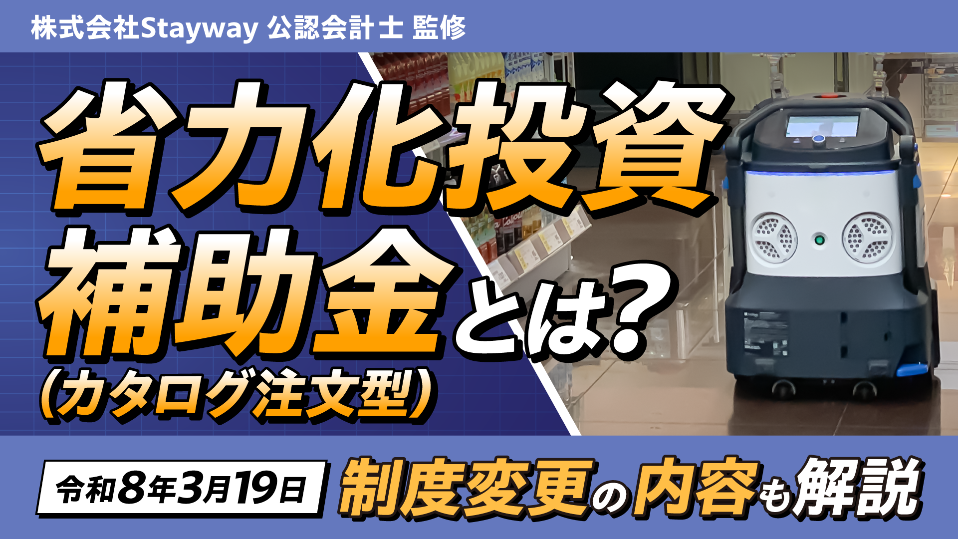 そこでこの記事では、省力化投資補助金(カタログ注文型)の制度概要に加えて、令和8年3月19日からの主な変更点について解説します。